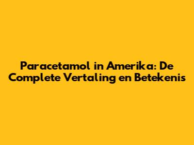 Paracetamol In Amerika: De Complete Vertaling En Betekenis