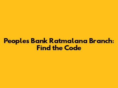 The Peoples Bank Ratmalana Branch Code