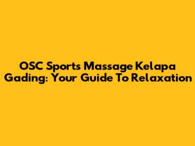 OSC Sports Massage Kelapa Gading: Your Guide To Relaxation