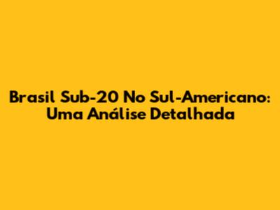 Brasil Sub-20 No Sul-Americano: Uma Análise Detalhada