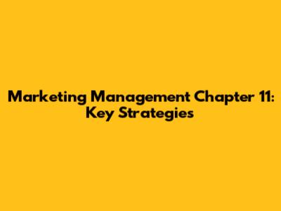 Marketing Management Chapter 11: Key Strategies