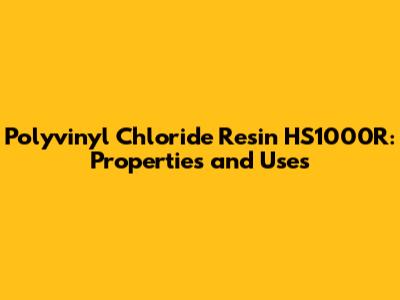 Polyvinyl Chloride Resin HS1000R: Properties And Uses
