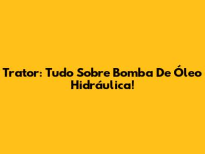 Trator: Tudo Sobre Bomba De Óleo Hidráulica!