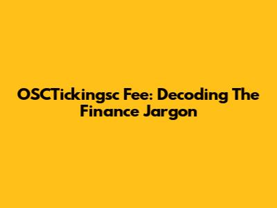 OSCTickingsc Fee: Decoding The Finance Jargon