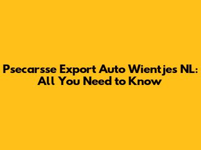 Psecarsse Export Auto Wientjes NL: All You Need To Know