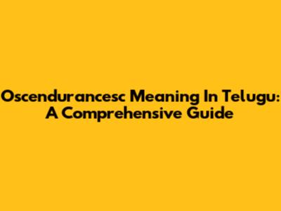 Oscendurancesc Meaning In Telugu: A Comprehensive Guide