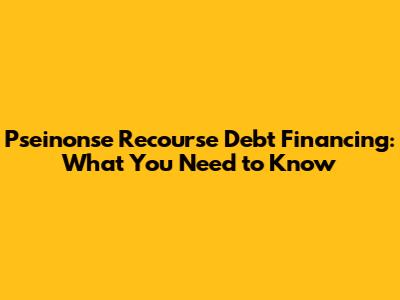 Let's dive into the world of pseinonse recourse debt financing, guys! It might sound like a mouthful, but it's a crucial concept to understand, especially if you're involved in finance, investing, or running a business. This type of financing has specific implications for both lenders and borrowers, affecting risk and responsibility. This article will break down what pseinonse recourse debt financing actually means, how it works, and the pros and cons associated with it. So, buckle up, and let's get started!