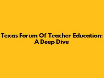 Texas Forum Of Teacher Education: A Deep Dive
