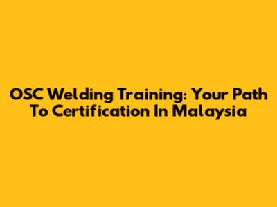 OSC Welding Training: Your Path To Certification In Malaysia