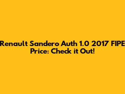 Hey guys! Are you looking into getting a Renault Sandero Auth 1.0 2017 and want to know all about its FIPE price? You've come to the right place! This article will dive deep into everything you need to know about this specific model, its value according to the FIPE table, and other important factors to consider before making a purchase. Let's get started!