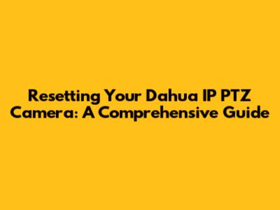 Why Reset Your Dahua IP PTZ Camera?
