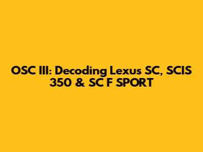 OSC III: Decoding Lexus SC, SCIS 350 & SC F SPORT