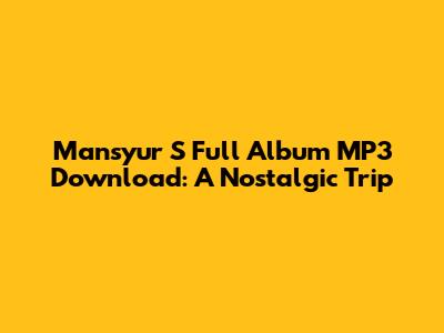 Mansyur S Full Album MP3 Download: A Nostalgic Trip