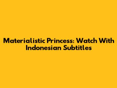 Materialistic Princess: Watch With Indonesian Subtitles