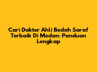 Cari Dokter Ahli Bedah Saraf Terbaik Di Medan: Panduan Lengkap