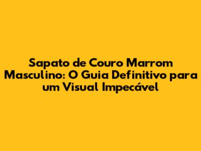 Sapato De Couro Marrom Masculino: Guia Completo E Dicas De Estilo