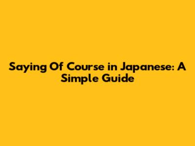 Saying Of Course In Japanese: A Simple Guide