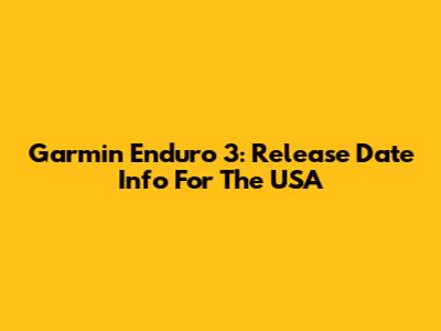Garmin Enduro 3: Release Date Info For The USA