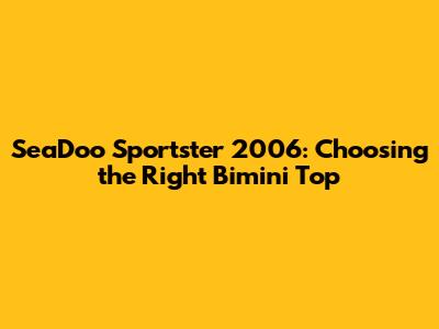 SeaDoo Sportster 2006: Choosing The Right Bimini Top