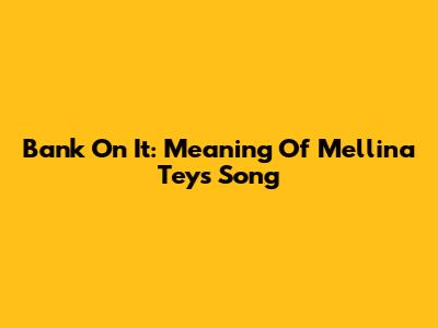 Bank On It: Meaning Of Mellina Tey's Song