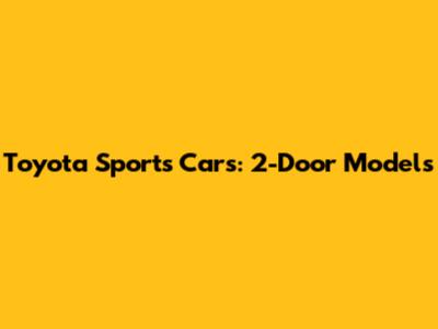 Toyota Sports Cars: 2-Door Models