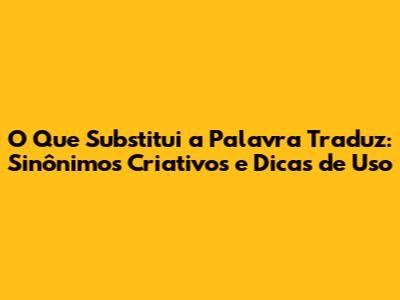 Se você está buscando alternativas para a palavra "traduz" em seus textos, seja para evitar repetições, dar um toque mais elegante ou simplesmente variar o vocabulário, este artigo é para você! Exploraremos diversas opções que podem enriquecer sua escrita e torná-la mais interessante. Vamos juntos descobrir sinônimos criativos e dicas de como usá-los adequadamente.
