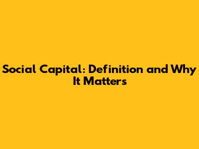 Social Capital: Definition And Why It Matters