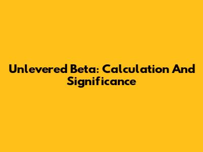 Unlevered Beta: Calculation And Significance