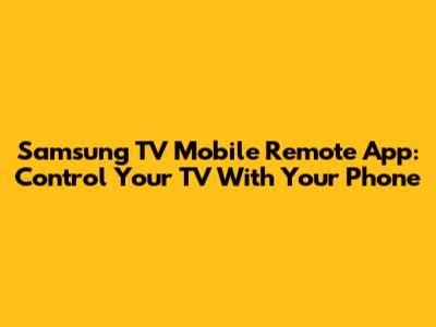 Samsung TV Mobile Remote App: Control Your TV With Your Phone