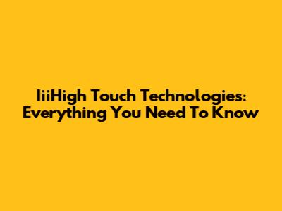 IiiHigh Touch Technologies: Everything You Need To Know