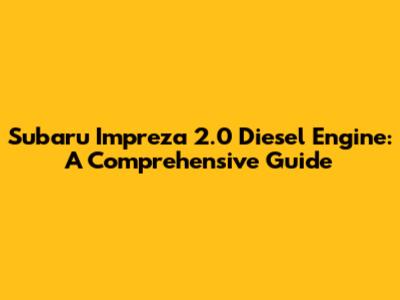 Subaru Impreza 2.0 Diesel Engine: A Comprehensive Guide