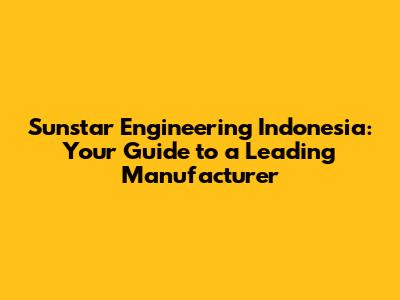 Sunstar Engineering Indonesia: Your Guide To A Leading Manufacturer