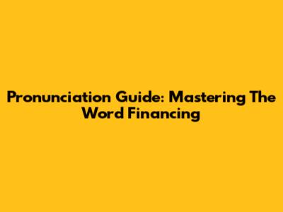 Pronunciation Guide: Mastering The Word 'Financing'