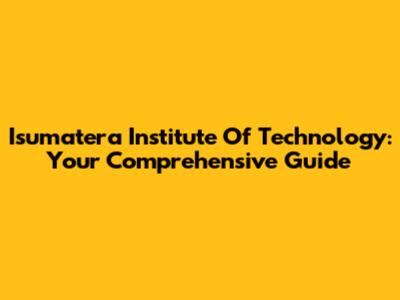 Isumatera Institute Of Technology: Your Comprehensive Guide