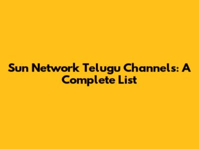 Sun Network Telugu Channels: A Complete List