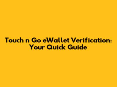 Step-by-Step Guide to Touch 'n Go eWallet Verification