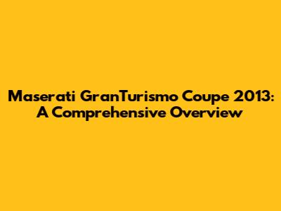 Maserati GranTurismo Coupe 2013: A Comprehensive Overview
