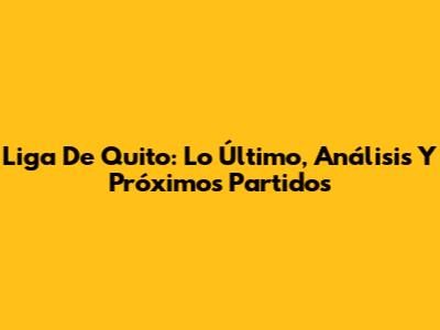 Liga De Quito: Lo Último, Análisis Y Próximos Partidos