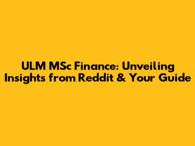 ULM MSc Finance: Reddit Insights & Your Guide