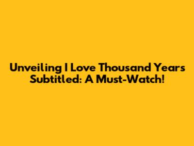 Unveiling 'I Love Thousand Years' Subtitled: A Must-Watch!