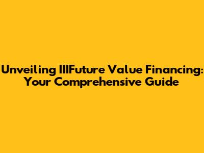 Hey guys! Let's dive into something that might sound a little complex at first: IIIFuture Value Financing. Don't worry, we're going to break it down so it's super easy to understand. We'll explore what it means, how it works, and why it matters, especially if you're looking into investments or financial planning. So, buckle up, and let's get started on this exciting journey to unravel the mysteries of IIIFuture Value Financing! This article aims to provide a clear understanding of IIIFuture Value Financing, demystifying its concepts and illustrating its practical applications in the real world. We'll walk through the fundamentals, examining its core principles and benefits, and discussing the essential aspects that make it a crucial tool for financial strategizing.