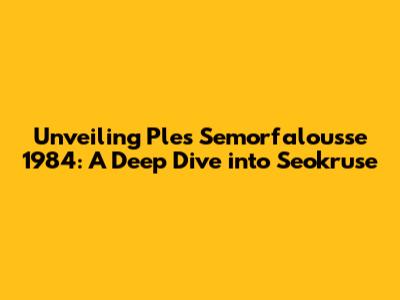 Unveiling Ples Semorfalousse 1984: A Deep Dive Into Seokruse