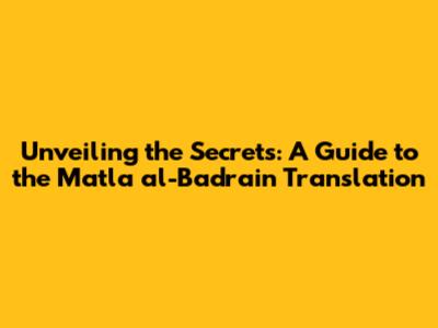 Unveiling The Secrets: A Guide To The Matla' Al-Badrain Translation