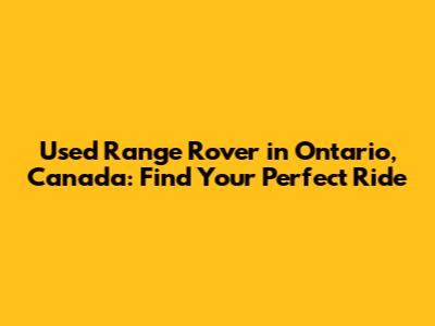 Used Range Rover In Ontario, Canada: Find Your Perfect Ride