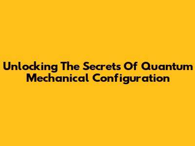 Unlocking The Secrets Of Quantum Mechanical Configuration