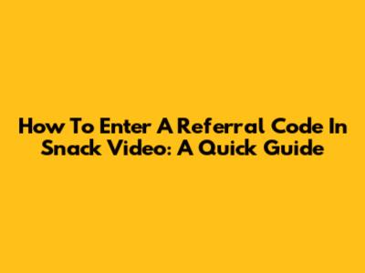 How To Enter A Referral Code In Snack Video: A Quick Guide