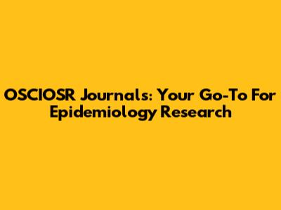 OSCIOSR Journals: Your Go-To For Epidemiology Research