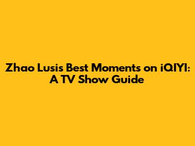 Zhao Lusi's Best Moments On IQIYI: A TV Show Guide